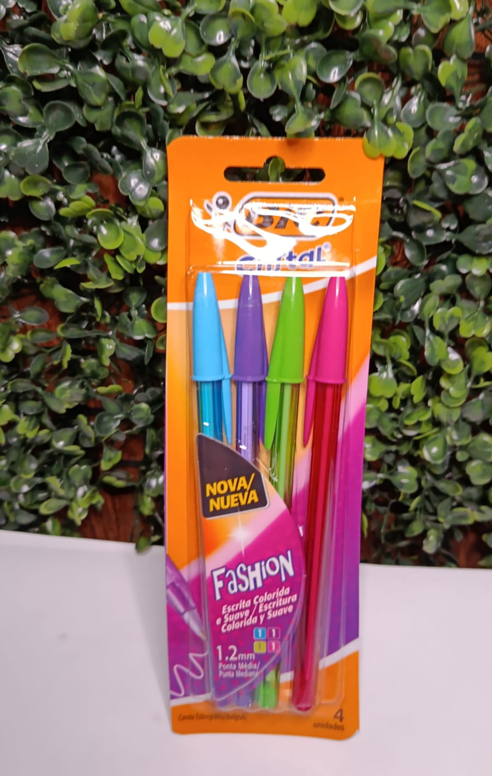 Ideal para uso escolar, profissional ou em casa, ajudando na organização por cores A caneta conta com tinta esferográfica colorida e corpo cristal que permite identificar o nível da tinta. Cada cor possui ponta média de 1,2 mm para escrita confortável e nítida. O conjunto inclui quatro unidades em cores distintas para maior versatilidade.