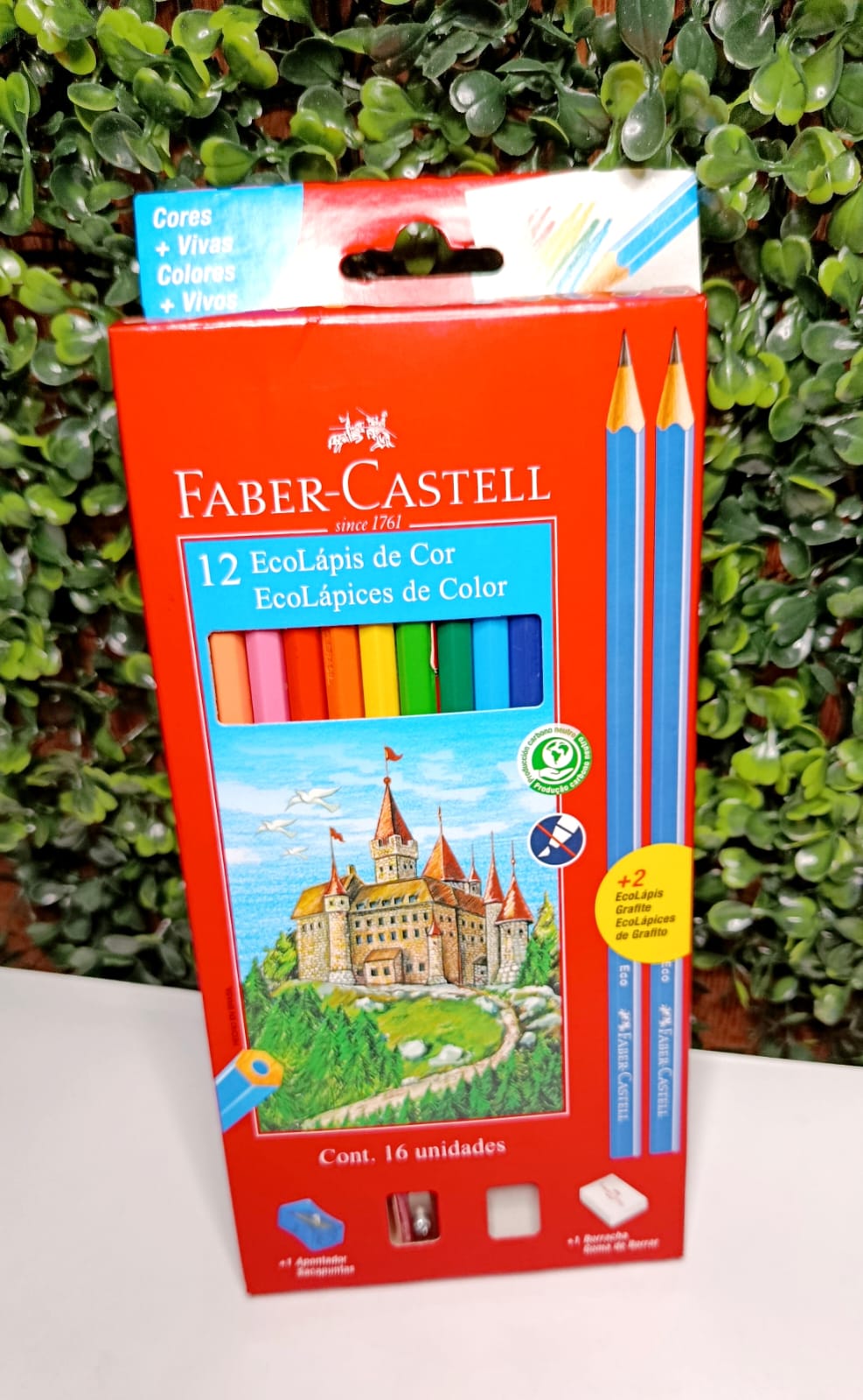 Os lápis são feitos com madeira reflorestada, contribuem para o meio ambiente e possuem grafite resistente que evita quebras. As cores são vibrantes, garantindo desenhos alegres e destacando detalhes. A embalagem inclui 16 unidades: 12 lápis coloridos, 2 graphite, 1 apontador e 1 borracha. O conjunto é ideal para estudantes, artistas iniciantes e para quem gosta de colorir com qualidade e conforto.